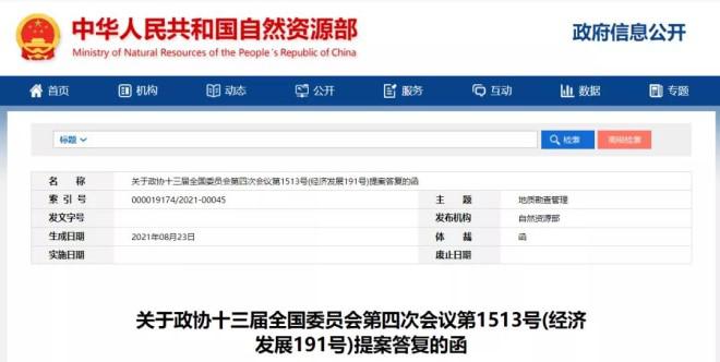 Our ministry is to organize the formulation of the first "rules" of the national land planning outline (2021-2035), overall consideration around the endowment of resources environment and economic and social development reality, draw a strategic mineral resources security area, layout of a batch of energy resources base, national planning and reserve mines mining area, draw a batch of key exploration area.